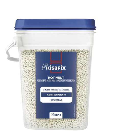 Com sua fórmula de qualidade Kisafix, proporciona colagens resistentes e duradouras, suportando altas temperaturas e mantendo a eficiência mesmo em processos de produção contínua. Além disso, a aplicação é prática: basta aquecer a cola no equipamento apropriado para obter o ponto ideal de uso.