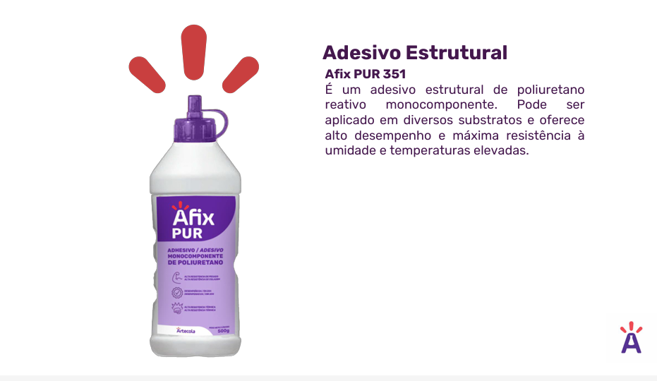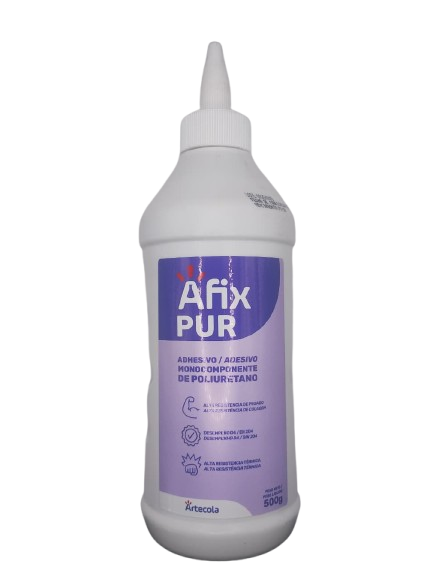 Cola PUR 351 Afix 500g. Adesivo estrutural de poliuretano reativo com alta resistência à umidade e temperatura. Ideal para colagem profissional em madeira e MDF.