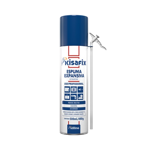 Espuma Expansiva de Poliuretano Kisafix 500ml, ideal para vedação e isolamento térmico e acústico. Expande ao contato com o ar, garantindo aderência firme e durabilidade superior.