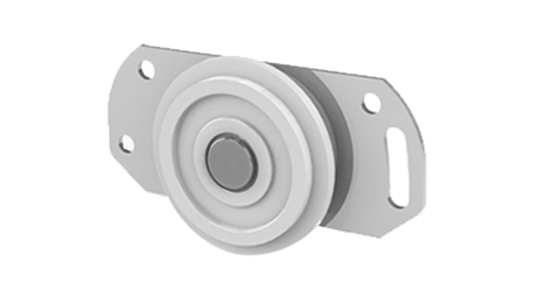 Roldana com chapa de aço sem mola e roda de 40 mm, com deslizamento suave suportando um peso máximo de 45 kg.